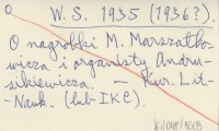 W. S. 1935 (1936?) O nagrobki M. Marszałkowicza i organisty Andrusikiewicza.