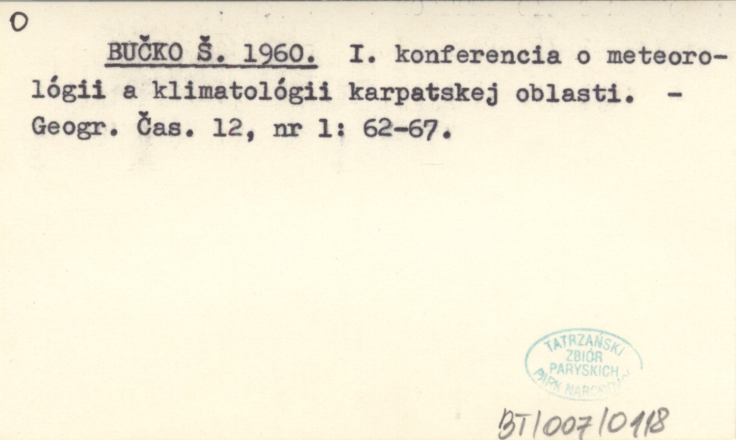 BUČKO Š. 1960 I. konferencia o meteorológii a klimatológii karpatskej oblasti.