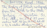 BUCZEK Karol 1963 Dzieje kartografii polskiej od XV do XVIII wieku. Zarys analityczno-syntetyczny.