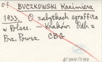BUCZKOWSKI Kazimierz 1933 O zabytkach sgraffita w Polsce.