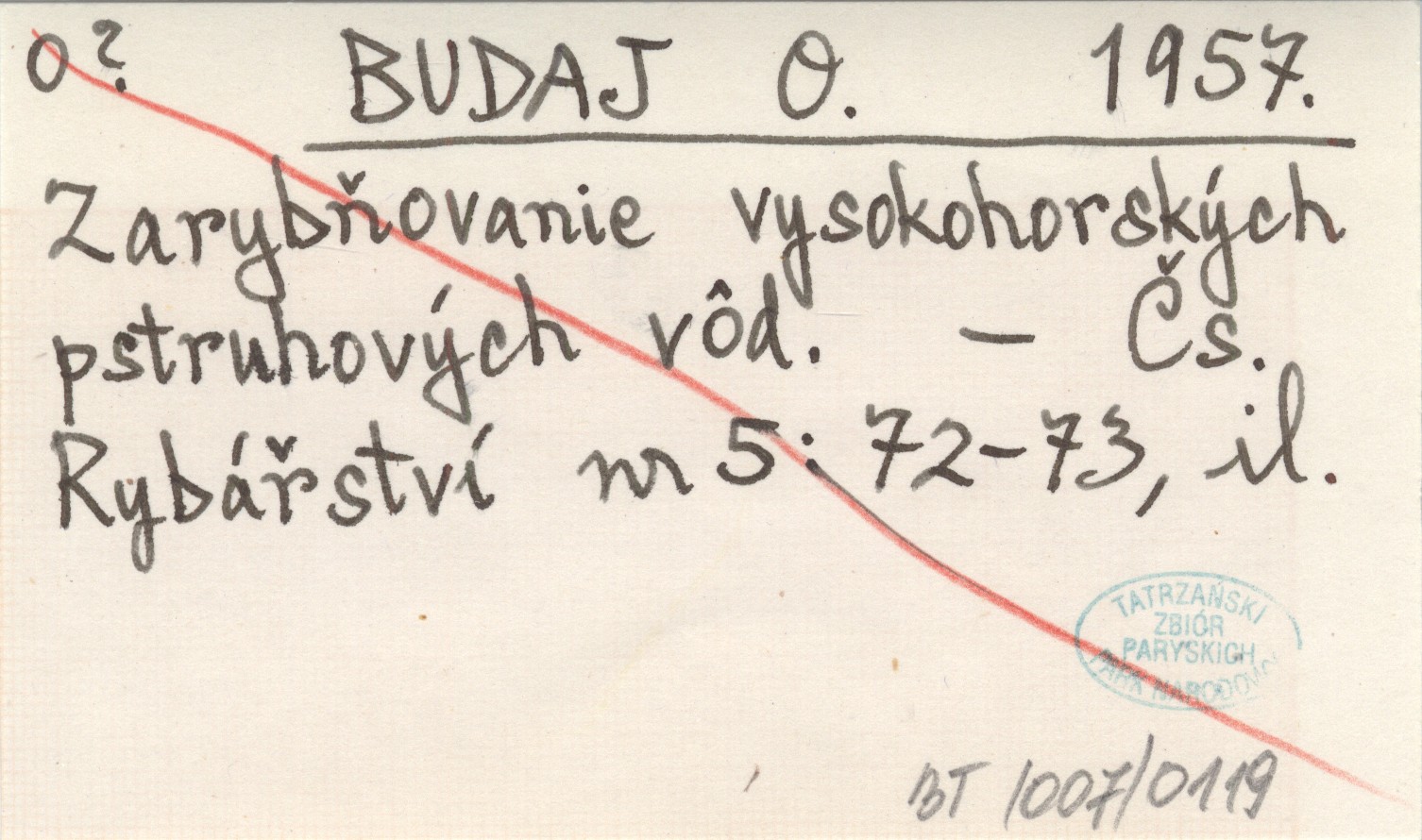 BUDAJ O. 1957 Zarybňovanie vysokohorských pstruhových vôd.