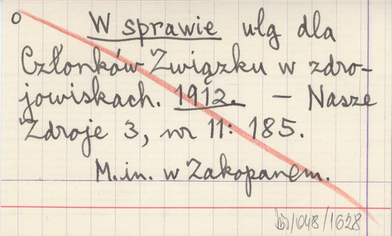 W sprawie ulg dla Członków Związku w zdrojowiskach. 1912