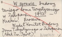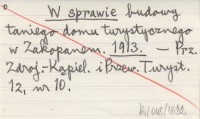 W sprawie budowy taniego domu turystycznego w Zakopanem. 1913