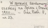 W sprawie żandarmeryi czeskiej a Spiszu i Orawie. 1920...