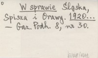 W sprawie Śląska, Spisza i Orawy. 1920...