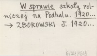 W sprawie szkoły rolniczej na Podhalu. 1920...