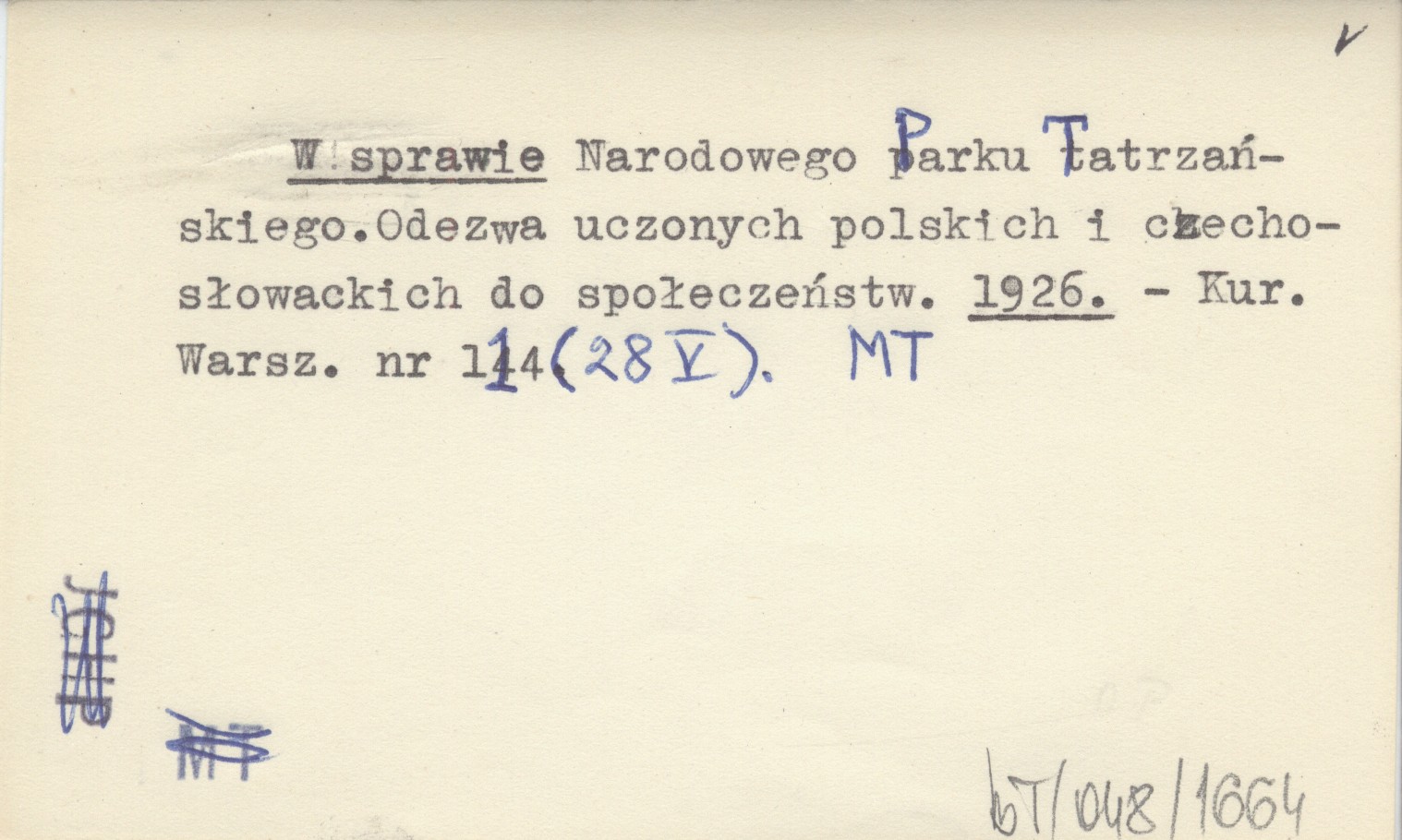 W sprawie Narodowego Parku Tatrzańskiego.Odezwa uczonych polskich i czechosłowackich do społeczeństw. 1926
