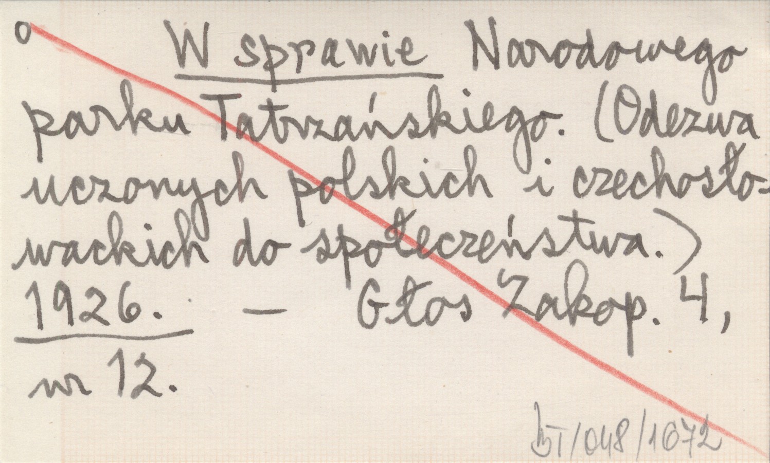 W sprawie Narodowego Parku Tatrzańskiego. (Odezwa uczonych polskich i czechosłowackich do społeczeństwa). 1926
