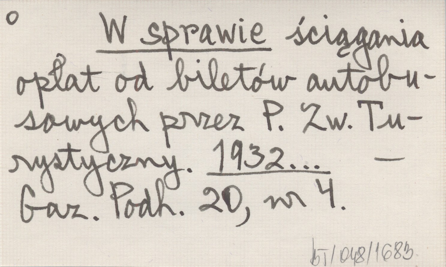 W sprawie ściągania opłat od biletów autobusowych przez P. Zw. Turystyczny. 1932...