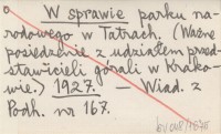 W sprawie parku narodowego w Tatrach. (Ważne posiedzenie z udziałem przedstawicieli górali w Krakowie). 1927