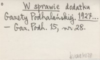 W sprawie dodatku Gazety Podhalańskiej. 1927...