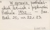 W sprawie podhalańskich letnisk i piękności Podhala. 1932...