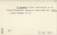 W sprawie Parku Narodowego w Tatrach. 1934 c