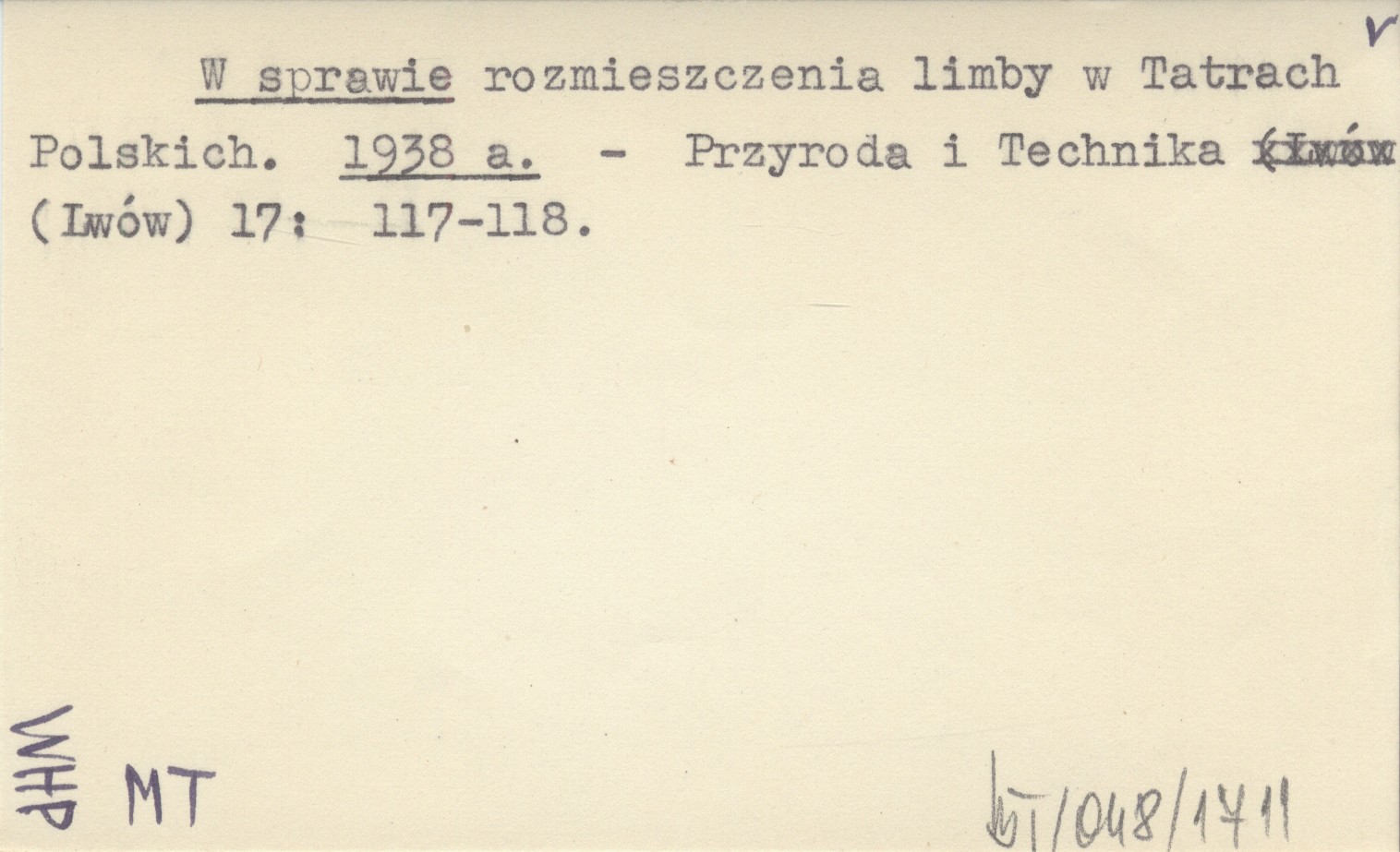 W sprawie rozmieszczenia limby w Tatrach Polskich. 1938 a