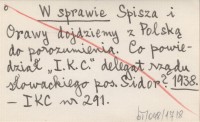 W sprawie Spisza i Orawy dojdziemy z Polską do porozumienia. Co powiedział "I.K.C." delegat rządu słowackiego pos. Sidor? 1938