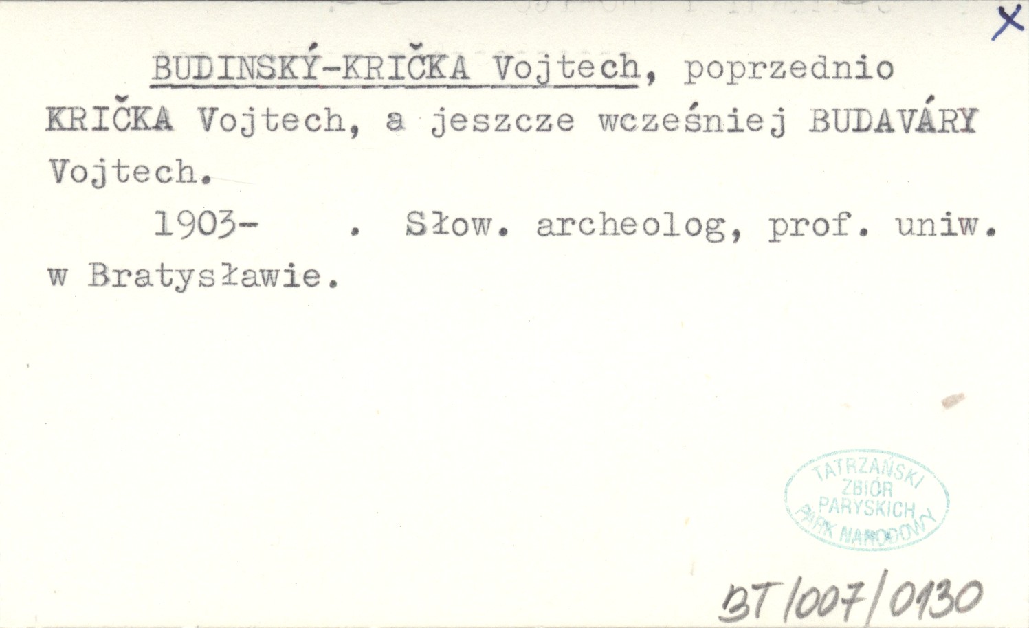 Poprzednio KRIČKA Vojtech, a jeszcze wcześniej BUDAVÁRY Vojtech. 1903- . Słowacki archeolog, prof. uniwersytecki w Bratysławie.