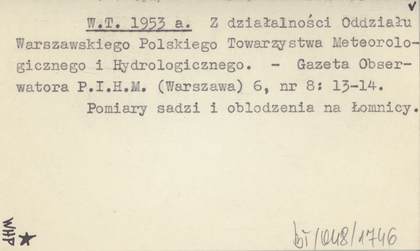 Gazeta Obserwatora P.I.H.M. (Warszawa) , 6, nr 8: 13-14. Pomiary sadzi i oblodzenia na Łomnicy.
