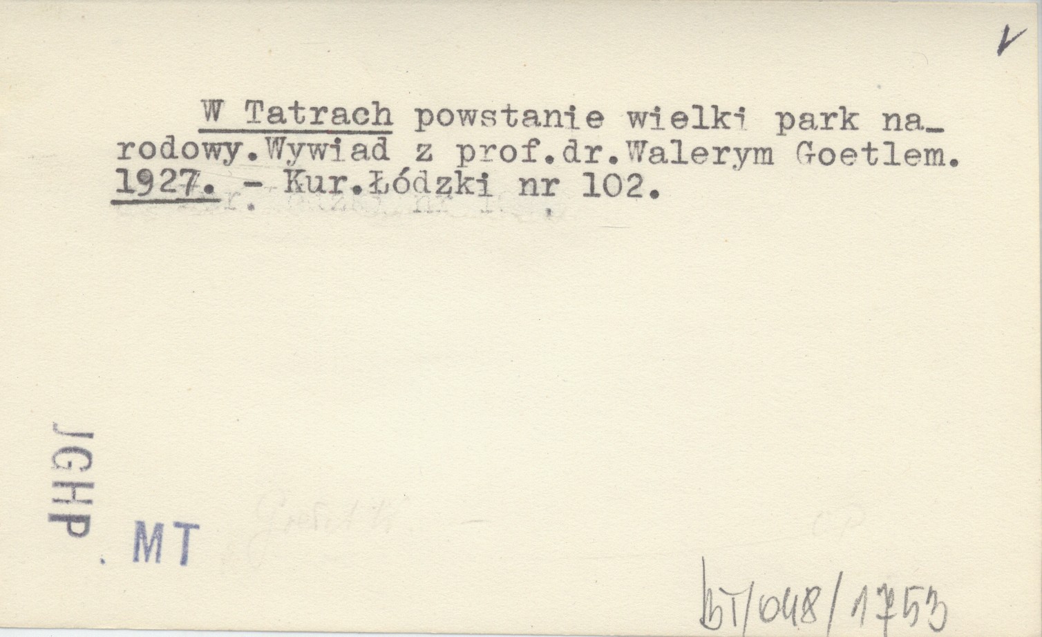 W Tatrach powstanie wielki park narodowy. Wywiad z prof.dr.Walerym Goetlem. 1927