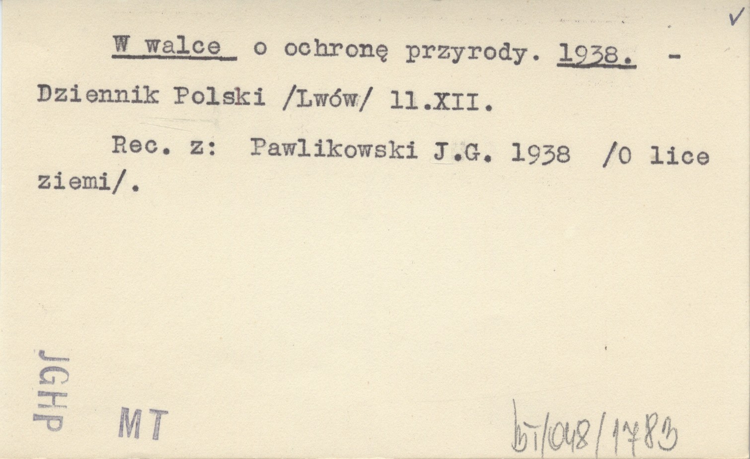 Dziennik Polski (Lwów) , 11 XII. Rec. z: Pawlikowski J.G. 1938 (O lice ziemi).
