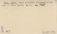 W.Z. 1933 Moja ostatnia "wyprawa" w Tatry.