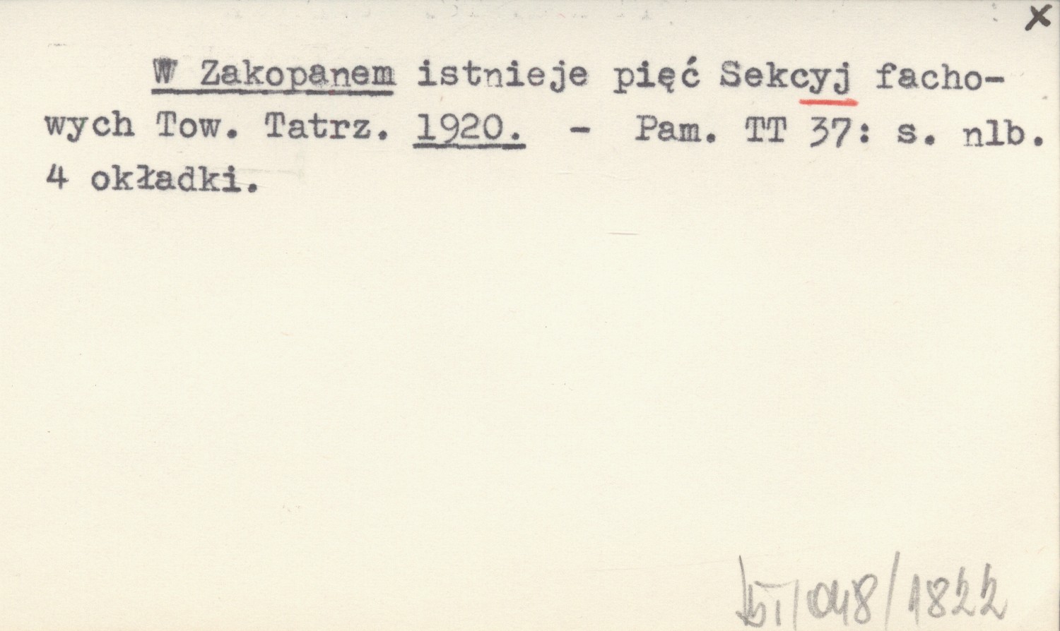 W Zakopanem istnieje pięć Sekcyj fachowych Tow. Tatrz. 1920