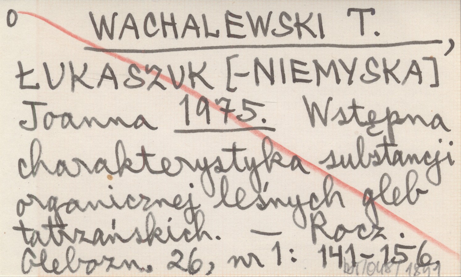 WACHALEWSKI T. ŁUKASZUK[-NIEMYSKA], Joanna. ; 1975 Wstępna charakterystyka substancji organicznej leśnych gleb tatrzańskich.