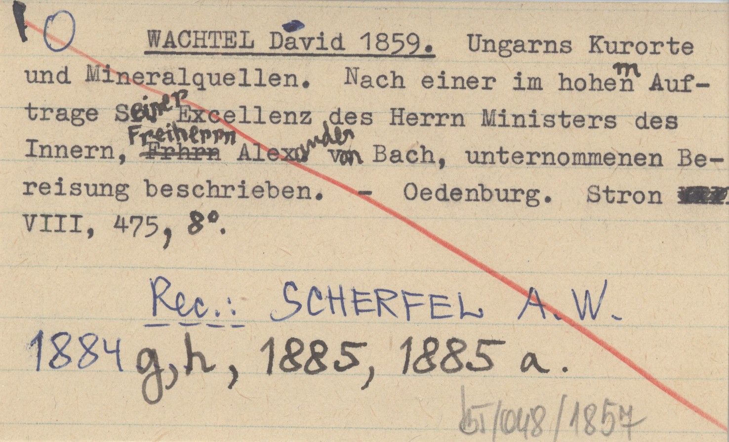 Oedenburg , VIII s., 475 s., 8°. REC: SCHERFEL A. W. 1884 g, h, 1885, 1885 a.