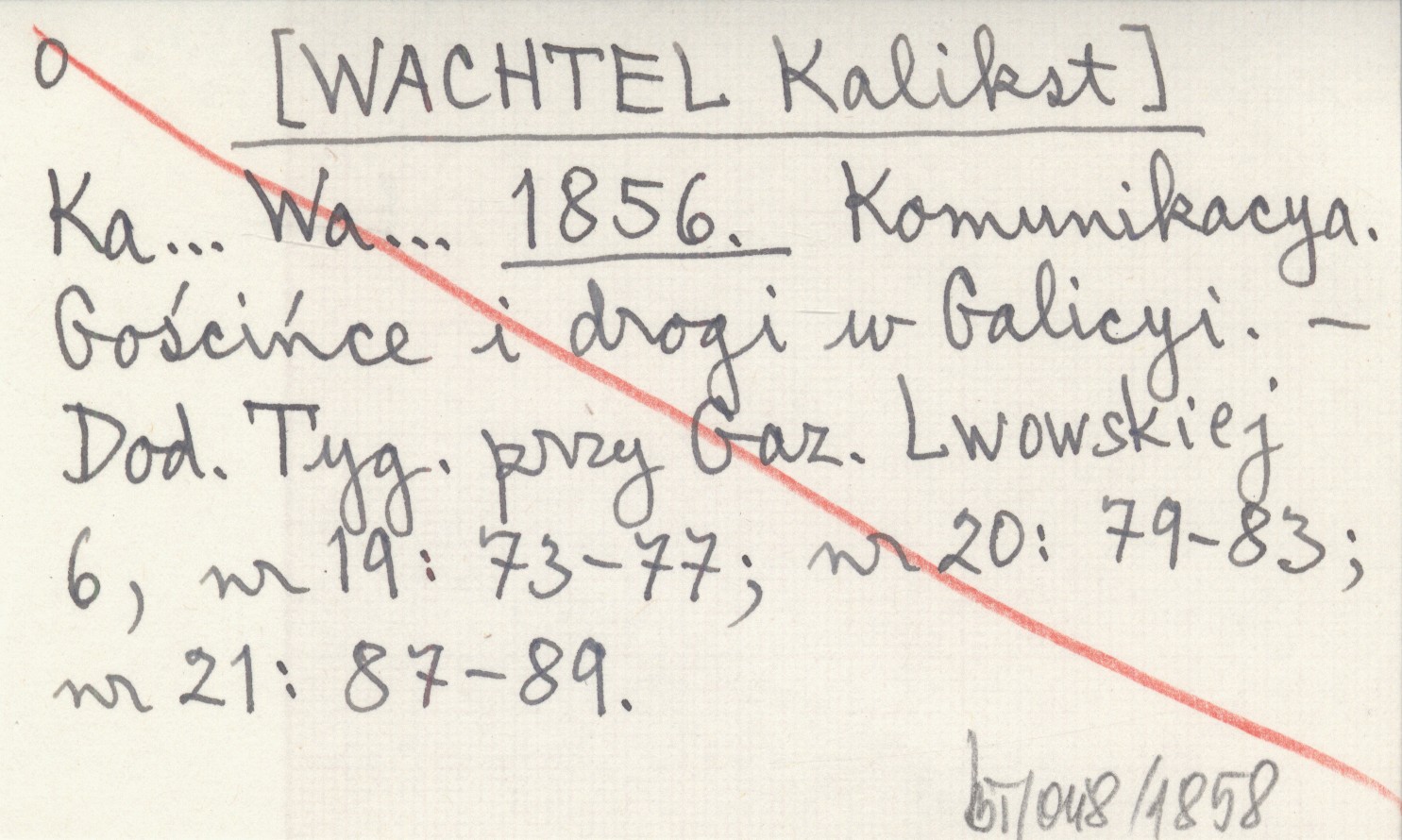 Ka... Wa... [WACHTEL Kalikst] 1856 Komunikacya. Gościńce i drogi w Galicyi.