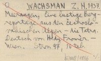 WACHSMAN Z. H. 1937 Meeraugen, Eine lustige Bergreportage aus den čechoslovakischen Alpen - die Tatra. Deutsch von Hedy Fromér.