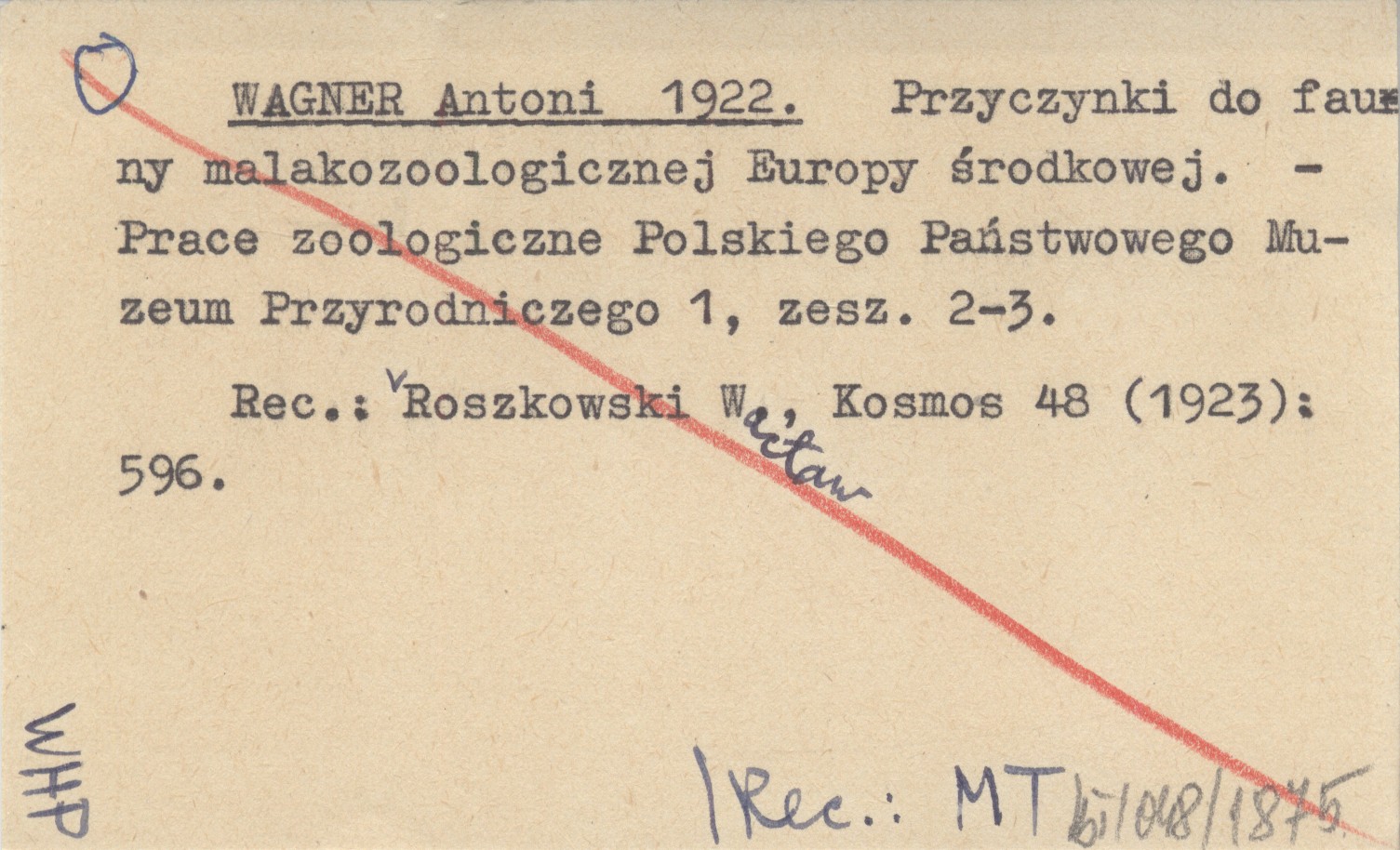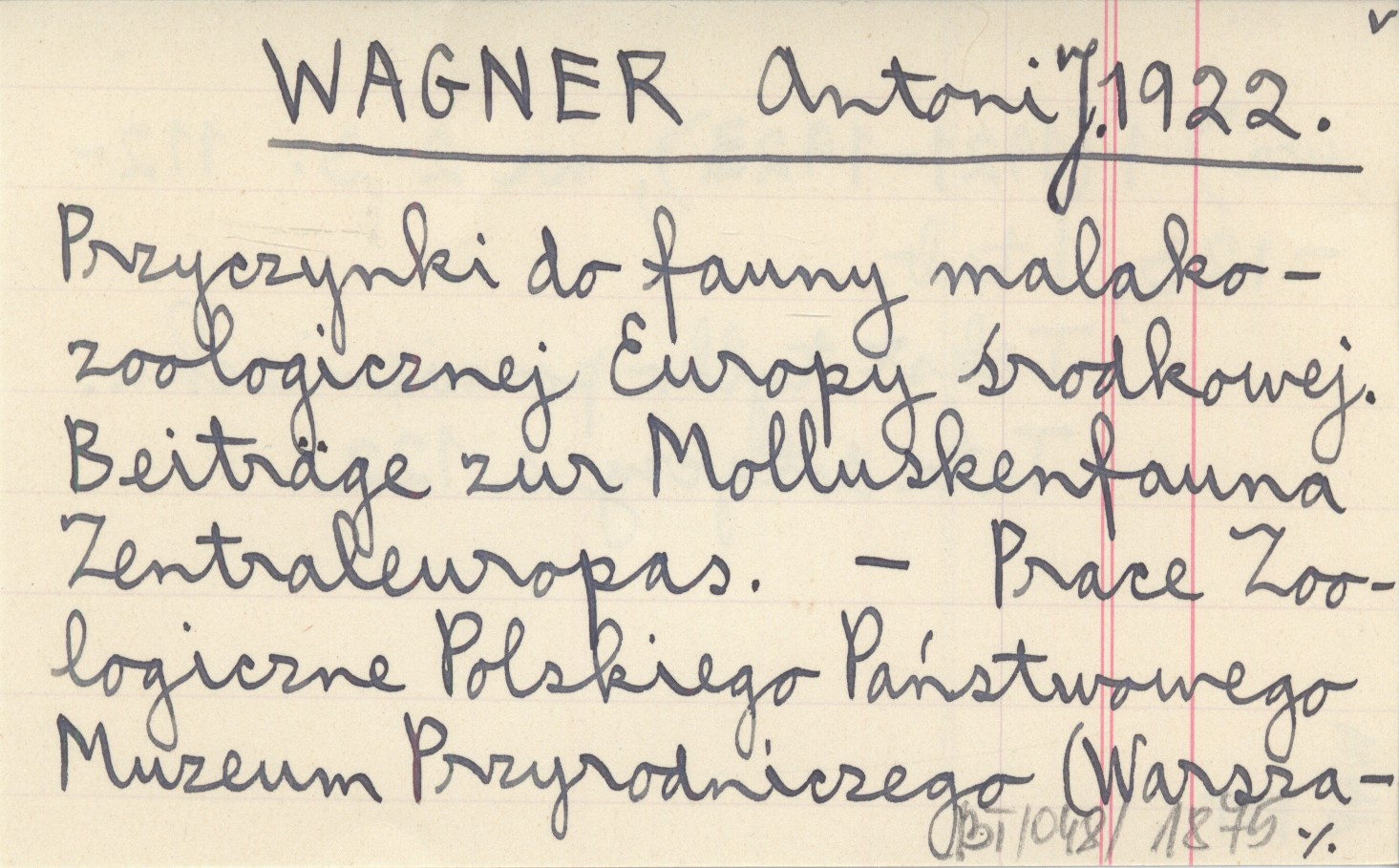 WAGNER Antoni J. 1922 Przyczynki do fauny malakozoologicznej Europy środkowej. Beiträge zur Molluskenfauna Zentraleuropas.