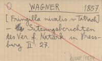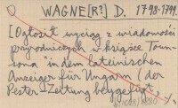 WAGNE[R?] D. 1798-1799 [Ogłosił wyciąg z wiadomości przyrodniczych w książce Townsona "in dem lateinischen Anzeiger für Ungarn (der Pester-Zeitung beygefügt, vom Jahr 1798, bis August 1799)"].