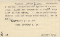 WAGNER Antoni J. 1928 Wiadomości z muzeum. Sprawozdanie dyrektora za rok 1927. (Affaires courantes du musée. Rapport du Directeur).
