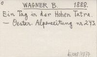 WAGNER B. 1888 Ein Tag in der Hohen Tatra.