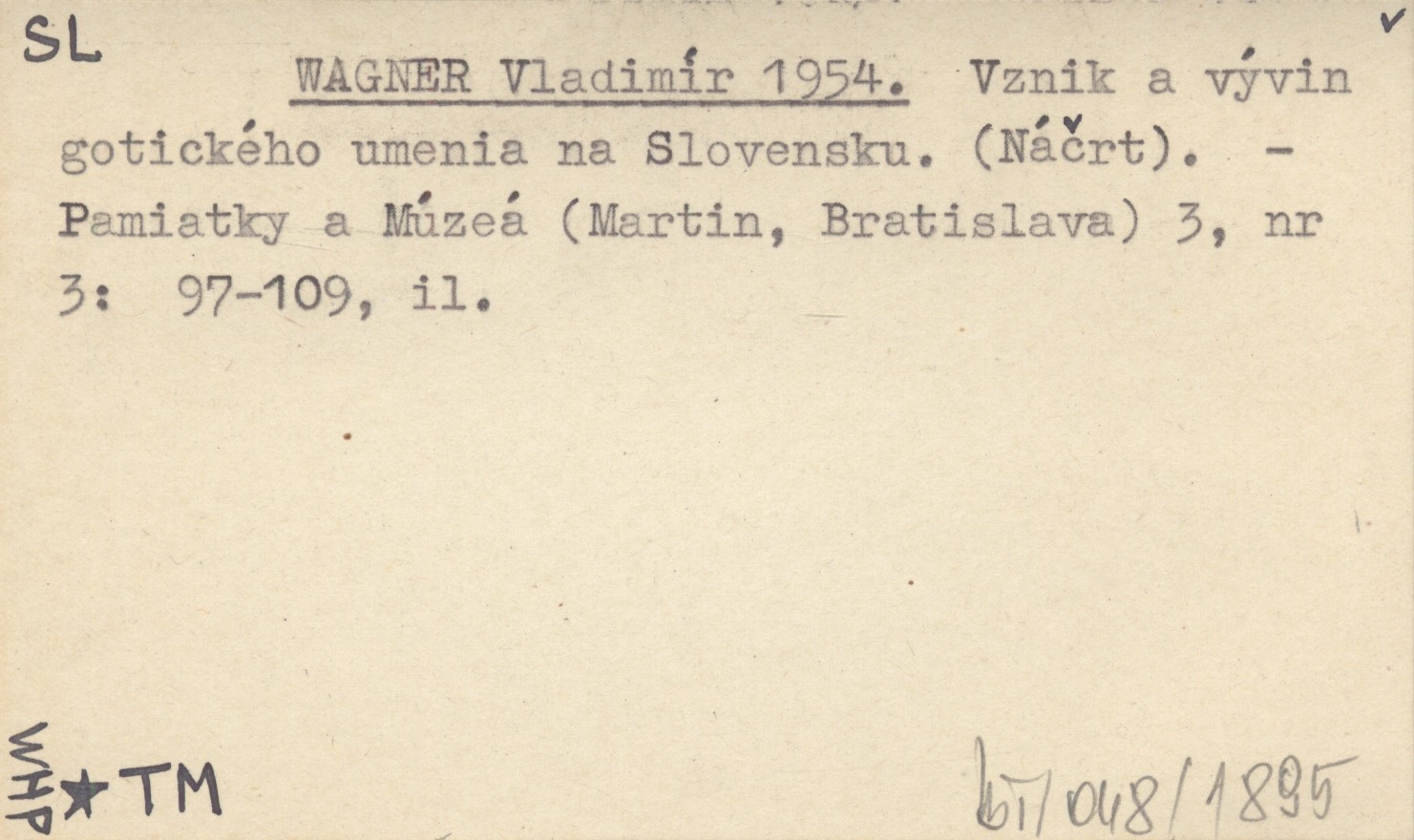 WAGNER Vladimír 1954 Vznik a vývin gotického umenia na Slovensku. (Náčrt).