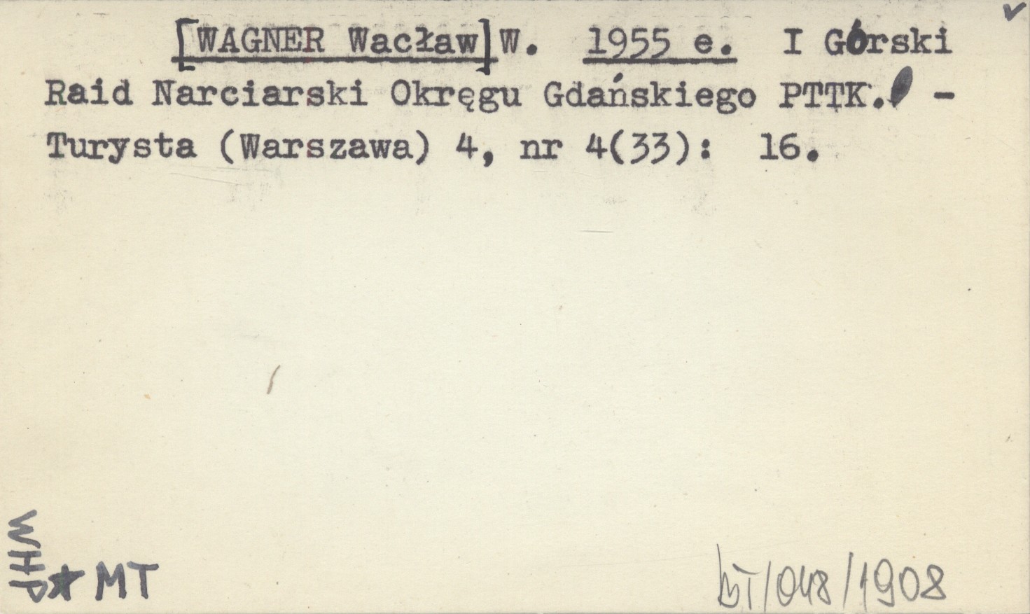 W. [WAGNER Wacław] 1955 e I Górski Raid Narciarski Okręgu Gdańskiego PTTK.
