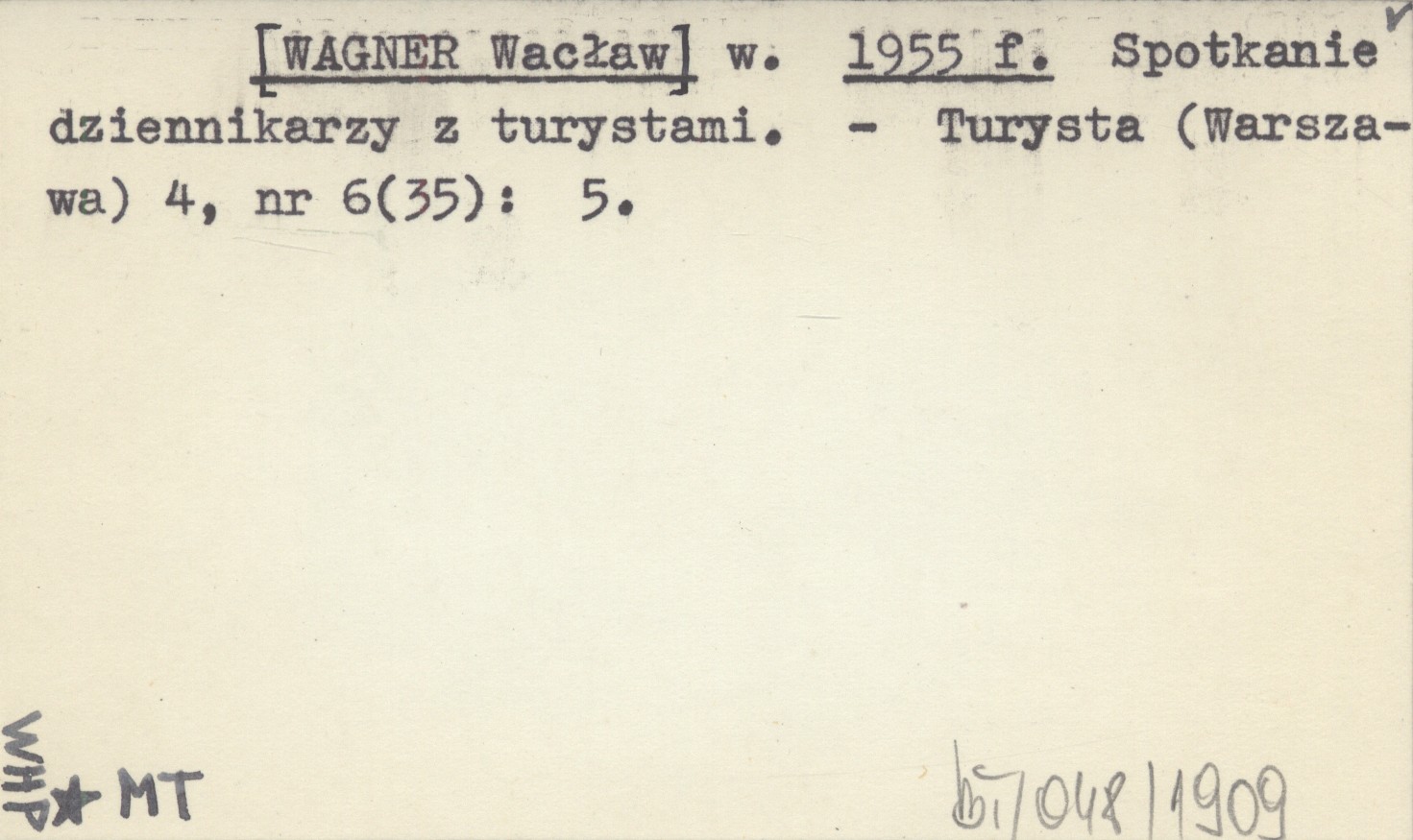 w. [WAGNER Wacław] 1955 f Spotkanie dziennikarzy z turystami.