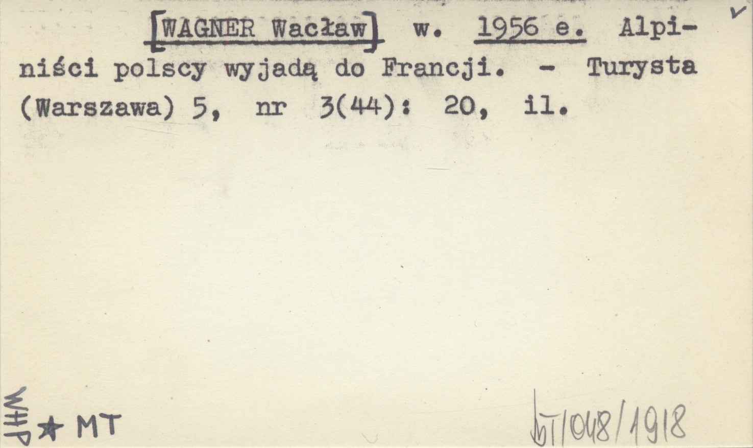 w. [WAGNER Wacław] 1956 e Alpiniści polscy wyjadą do Francji.