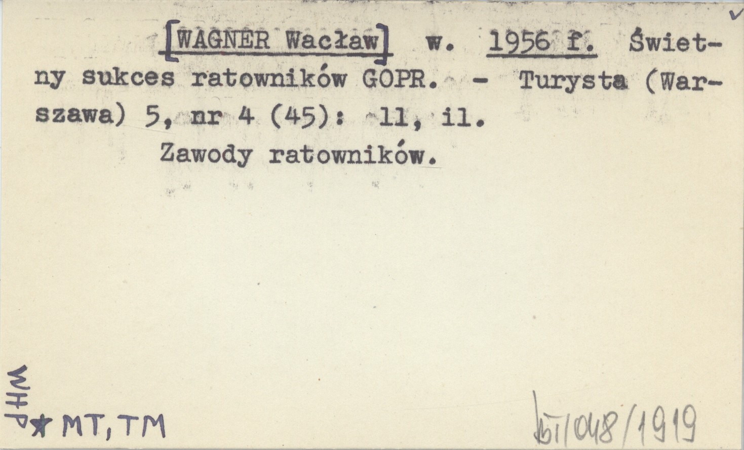 w. [WAGNER Wacław] 1956 f Świetny sukces ratowników GOPR.