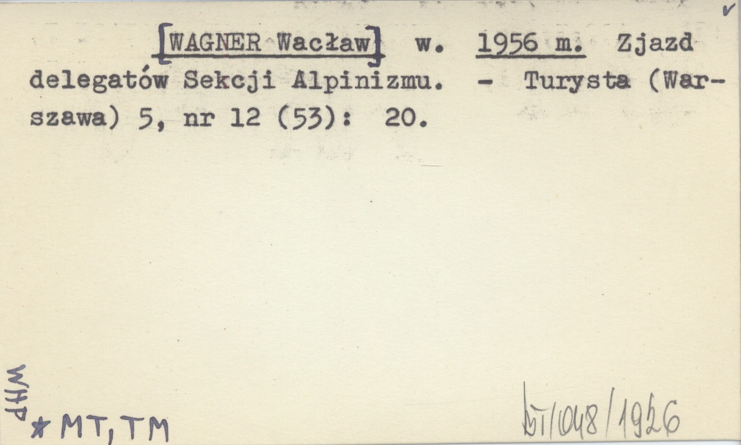 w. [WAGNER Wacław] 1956 m Zjazd delegatów Sekcji Alpinizmu.