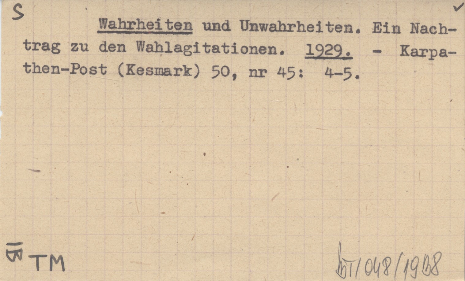Wahrheiten und Unwahrheiten. Ein Nachtrag zu den Wahlagitationen. 1929