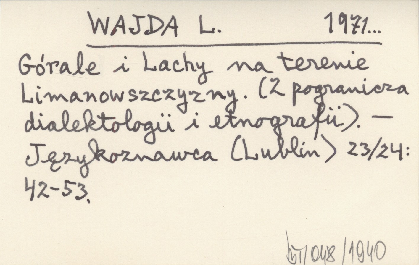 WAJDA L. 1971... Górale i Lachy na terenie Limanowszczyzny. (Z pogranicza dialektologii i etnografii).