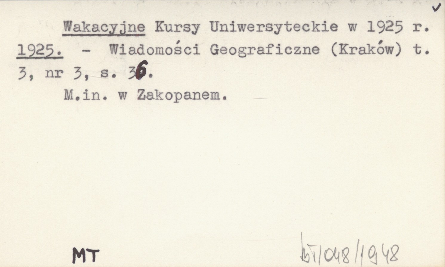 Wiadomości Geograficzne (Kraków) , T. 3, nr 3: 36. M.in. w Zakopanem.