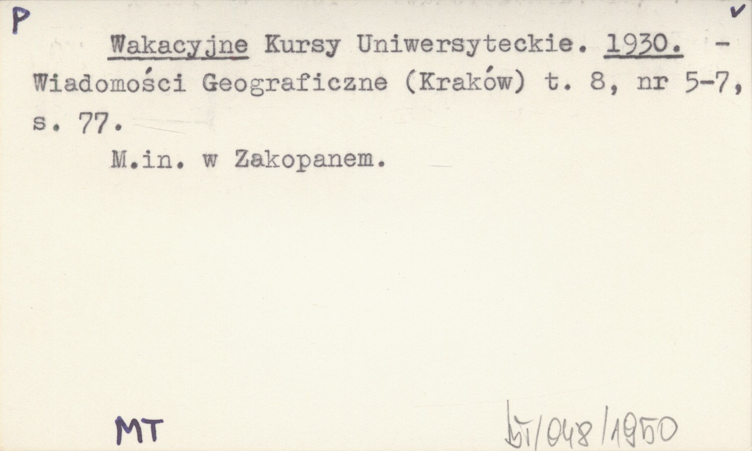 Wiadomości Geograficzne (Kraków) , T. 8, nr 5-7: 77. M.in. w Zakopanem.
