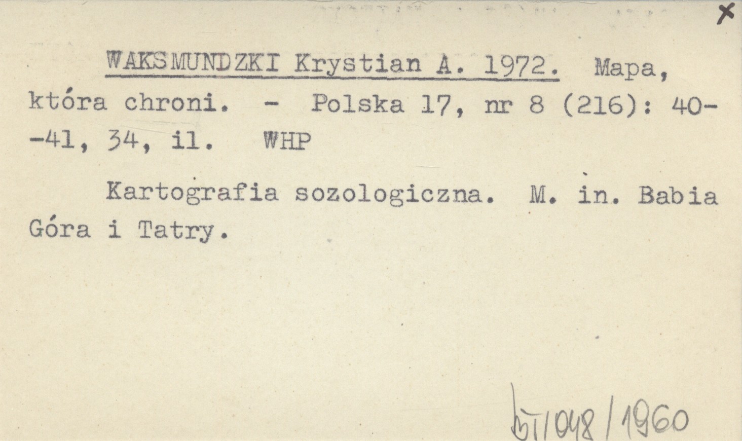 Polska, 17, nr 8 (216): 40-41, 34, il. Kartografia sozologiczna. M.in. Babia Góra i Tatry.