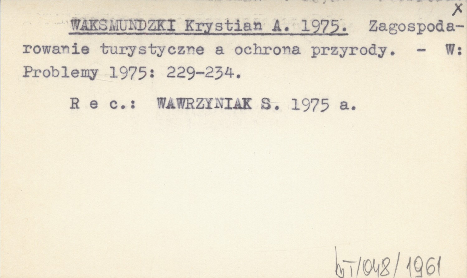 WAKSMUNDZKI Krystian A. 1975 Zagospodarowanie turystyczne a ochrona przyrody.