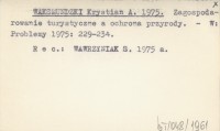 WAKSMUNDZKI Krystian A. 1975 Zagospodarowanie turystyczne a ochrona przyrody.