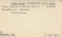 WALA Jerzy PIOTROWSKI, Jerzy. ; 1955 Druga Alpiniada Zimowa 1955 r.
