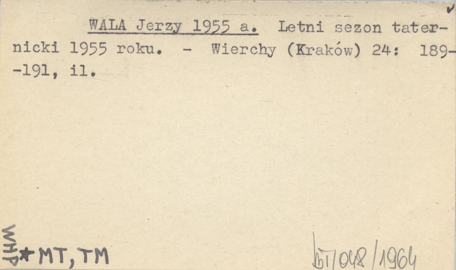 WALA Jerzy 1955 a Letni sezon taternicki 1955 roku.