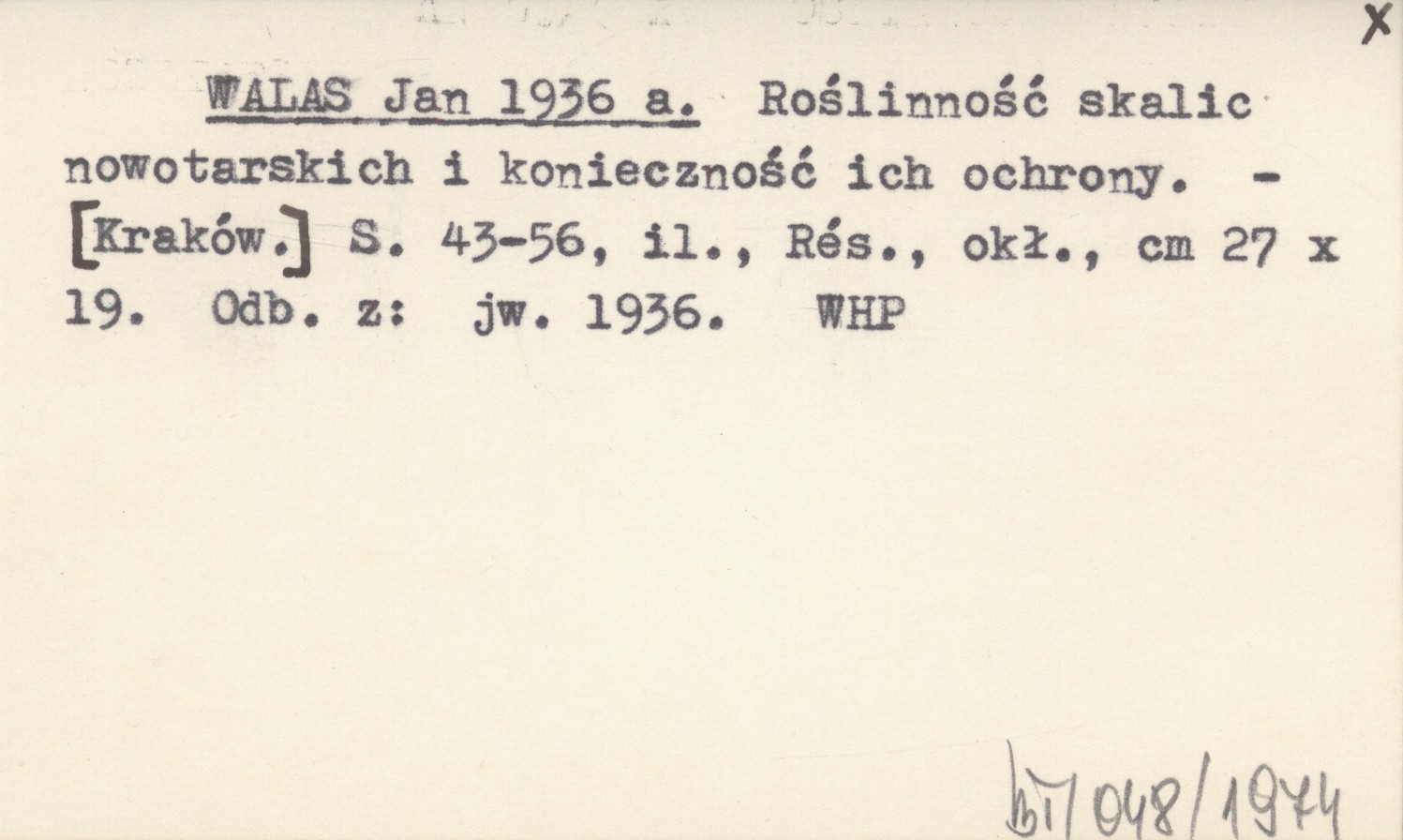 WALAS Jan 1936 a Roślinność skalic nowotarskich i konieczność ich ochrony.