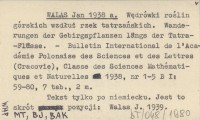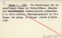 WALAS J. 1936 Die Wanderungen der Alpenpflanzen längs der Tatra-Flüsse.